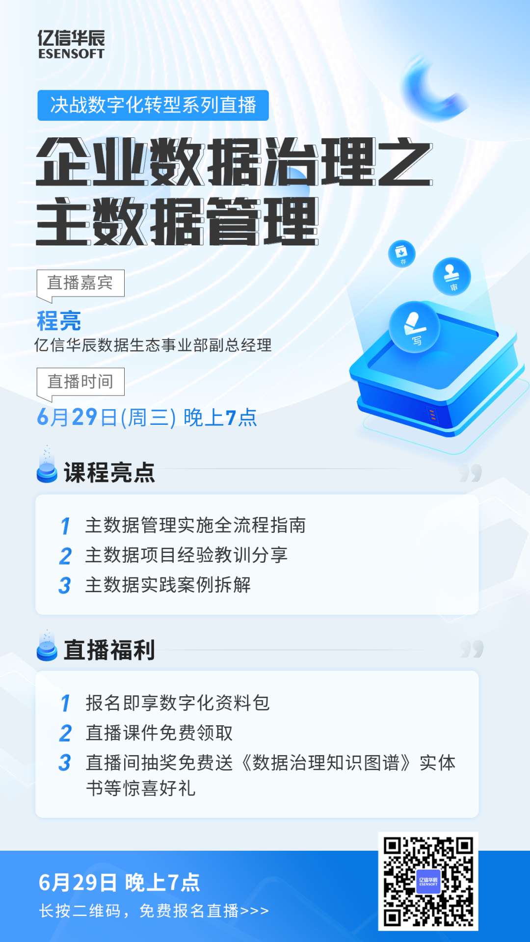 全程“零”编码,高效实现主数据模型、主数据维护、主数据分发、主数据质量的全过程管理,为企业主数据管理落地给予有效支撑,实现各业务系统间的主数据共享,保障企业主数据的唯一性、准确性、一致性。