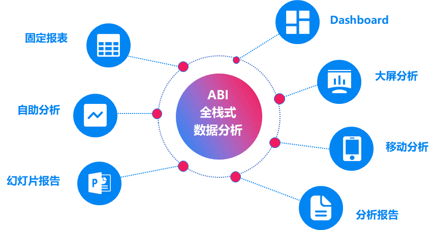 ABI = ALL in one BI,是一款全能型数据分析产品,融合了数据源适配、ETL数据处理、数据建模、数据分析、数据填报、工作流、门户、移动应用等核心功能而打造的一站式数据分析平台。