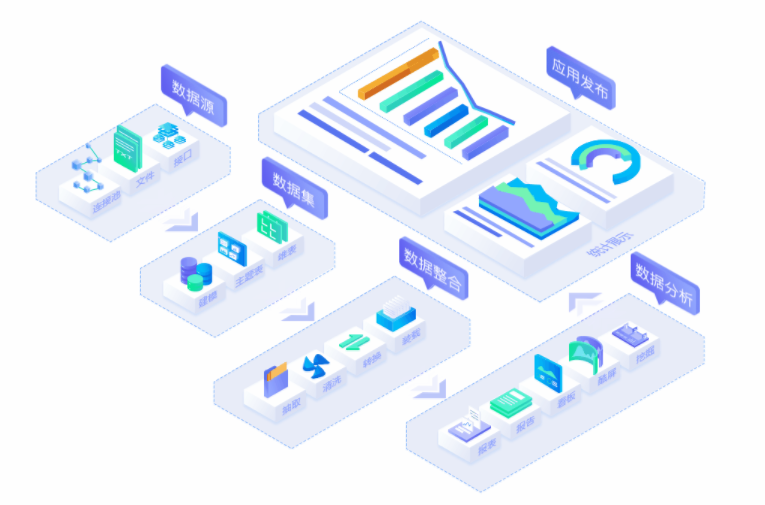 ABI从数据源接入,到数据采集、数据处理,再到数据应用,打通数据生命周期的各个环节,实现数据填报、处理、分析一体化,为用户给予一站式数据服务。