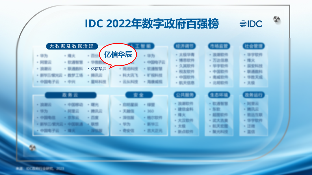 近期,领先的IT市场研究和咨询公司IDC发布2022年数字政府百强榜,梳理出数字政府领域领先的技术供应商,评估了技术给予商的市场能力及市场份额。
