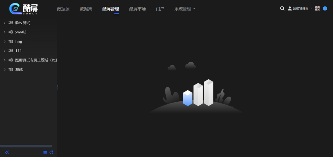 系统整体设计风格进行全面的更新,包括登录页、数据源、数据集、酷屏管理、酷屏市场、门户、系统管理等模块。从原来的蓝白商务风转成了黑色炫酷风,从视觉角度上提升科技质感,产品体验上让用户更专注于内容。