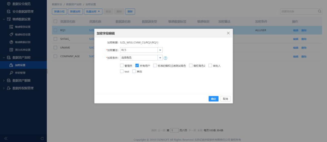 睿治支持对平台自身数据资产进行加密,现在给予:AES-128、AES-192、AES-256、DES、3DES、RC4、RC5等多种加密方法,同时支持对密钥进行管理,保证了加密的多样性和完整性。