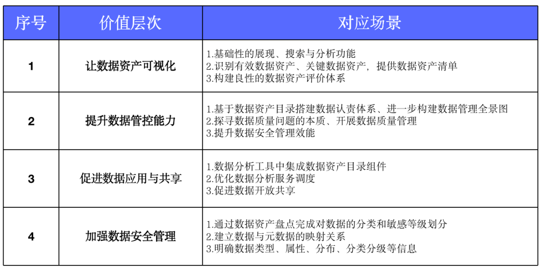 企业在识别出自身数据资产的基础上,进一步构建数据资产目录,加强数据资产的管控能力,对技术管理、业务运转起到良好的支撑作用,能够让数据在业务流转过程中更规范、更有效率;