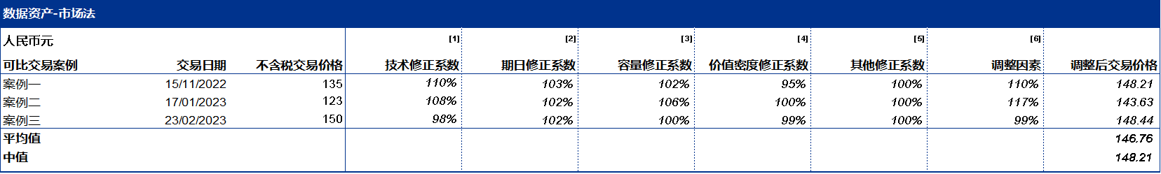 市场法数据资产价值分析示意性案例如下: