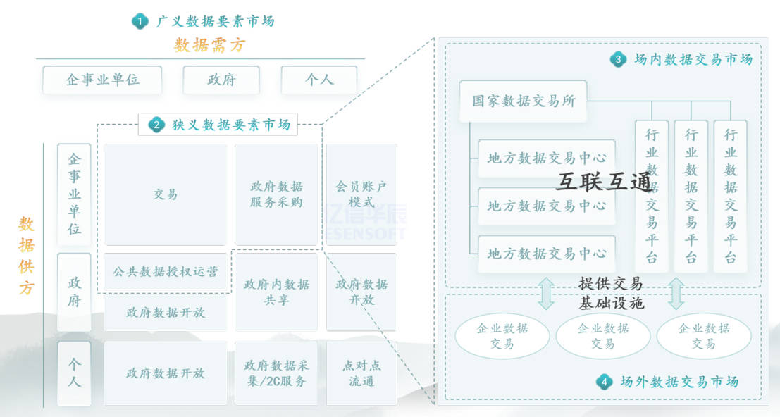 建立服务不同区域、不同行业、采用多元化交易模式、给予多样化数据产品和服务的市场结构。根据不同的市场需求和供应特点,可以划分不同的市场。