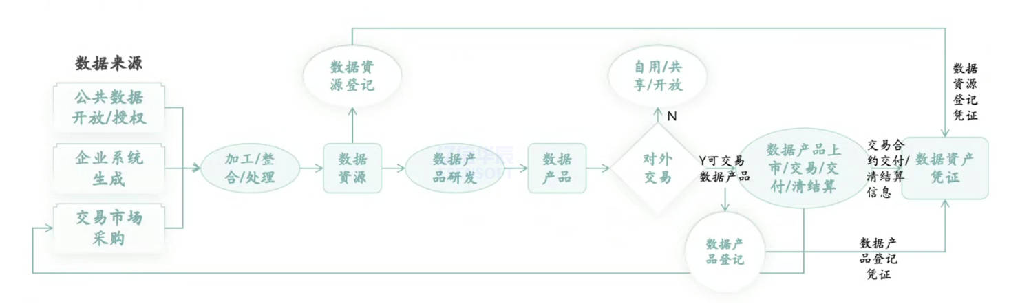 第一步数据资源化,企业将公共数据、系统生成数据、市场采购数据进行加工整合整理成为资源,那这个资源是登记的,这个过程的话是资源化的过程。