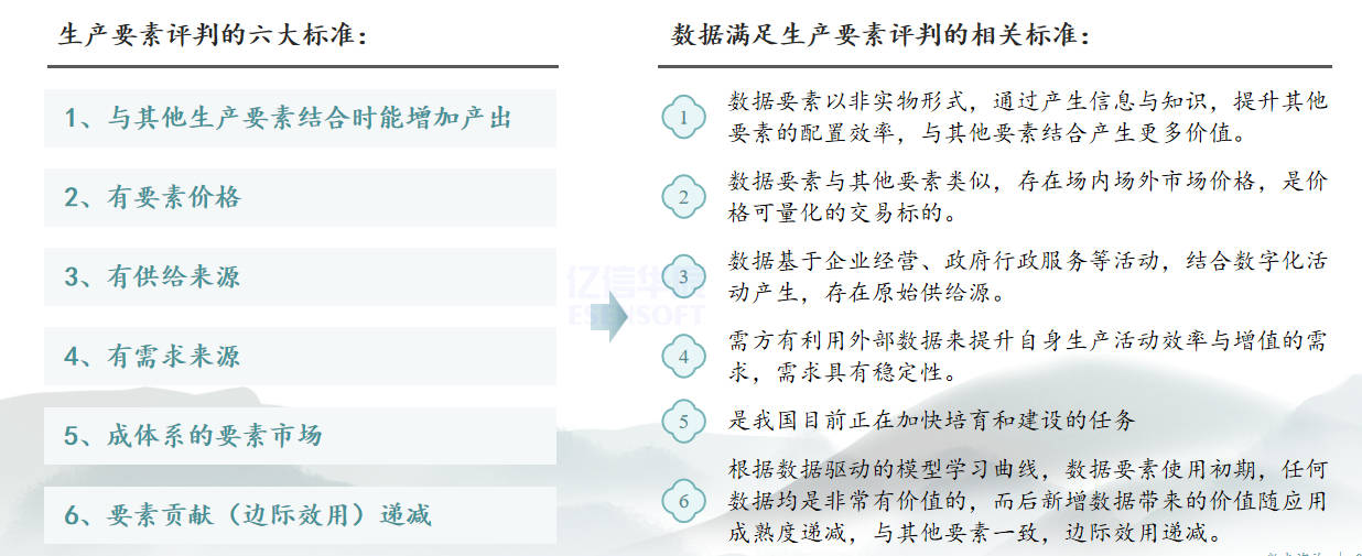 为什么数据能作为生产要素,先分析一下生产要素的评判6大标准,哪些是已经完全符合了,哪些是需要解决问题的挑战。