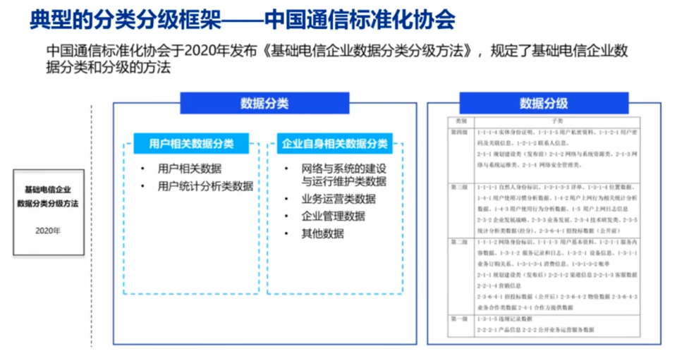 中国通信标准化会协会也是将基础电信企业的数据做了详细的分级分类。