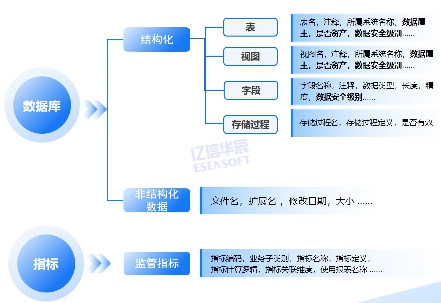 采集盘点范围的元数据,快速识别各类数据以便进行数据梳理分析,剔除相关数据,补充数据资产元数据属性为后续实现资产分目给予基础资源。
