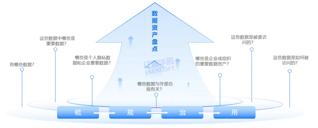 数据资产盘点不仅能发现数据资产、剖析数据现状,也能发现数据问题,查漏补缺,为企业数据资产管理指明了后续工作方向。顺利获得对数据进行盘点可帮助弄清楚以下问题:解决“有什么”、“用什么”、“如何用”等问题。