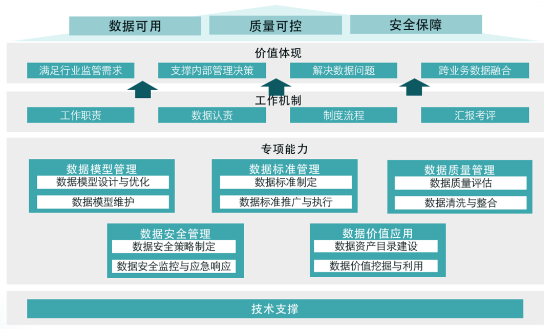 构建统一的数据资产管理平台,使各活动职能相关工具保持联动,覆盖数据的采集、流转、加工、使用等环节;由数据资产管理团队组织召开数据资源化活动,对于每一项活动,在数据需求中明确和记录数据使用方的规范与期望,在数据设计中支持规则的落地与应用,在数据运维中根据数据生产方业务和数据的变化,响应数据使用方规则与期望的调整,并及时发现和整改问题数据。