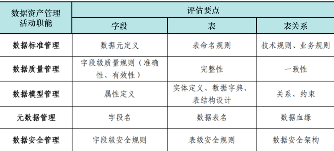 建立各活动职能的实施细则与操作规范。组织级数据资产标准规范体系指各活动职能下对数据技术设计、业务含义的标准化。以结构化数据为例,标准化的对象包括字段、表以及表间关系,对于各对象的标准化内容如表2所示。此外,结合数据资产管理相关管理办法,形成各活动职能的实施细则、操作规范,为数据资产管理的有效执行奠定良好基础。