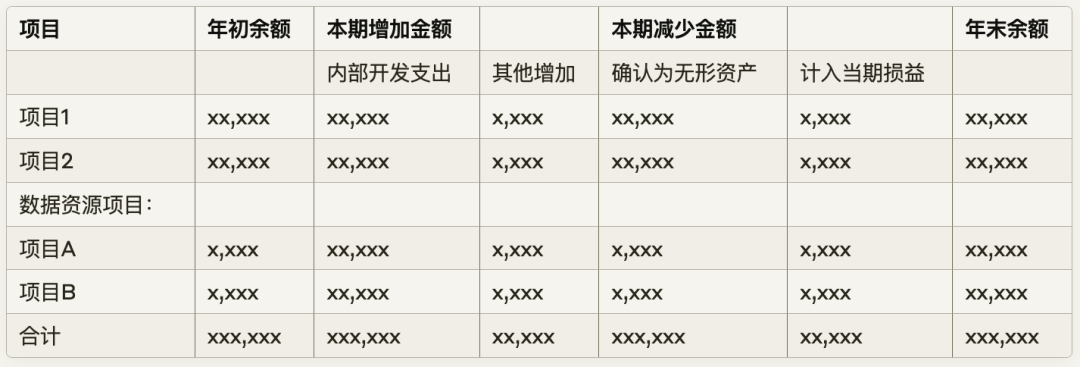 列示方式:无形资产 xx,xxx 其中:数据资源 xx,xxx