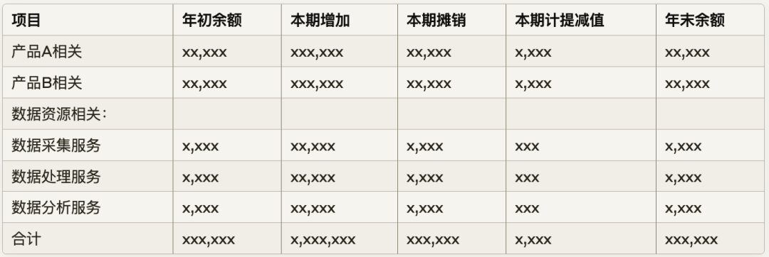 列示方式:存货 xx,xxx 其中:数据资源 xx,xxx