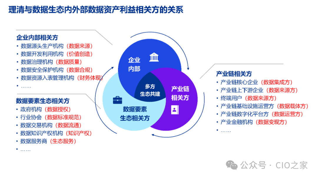企业内部相关方:数据源头生产组织、数据开发利用组织、数据治理组织、数据安全保护组织、数据资源入表管理组织等 。