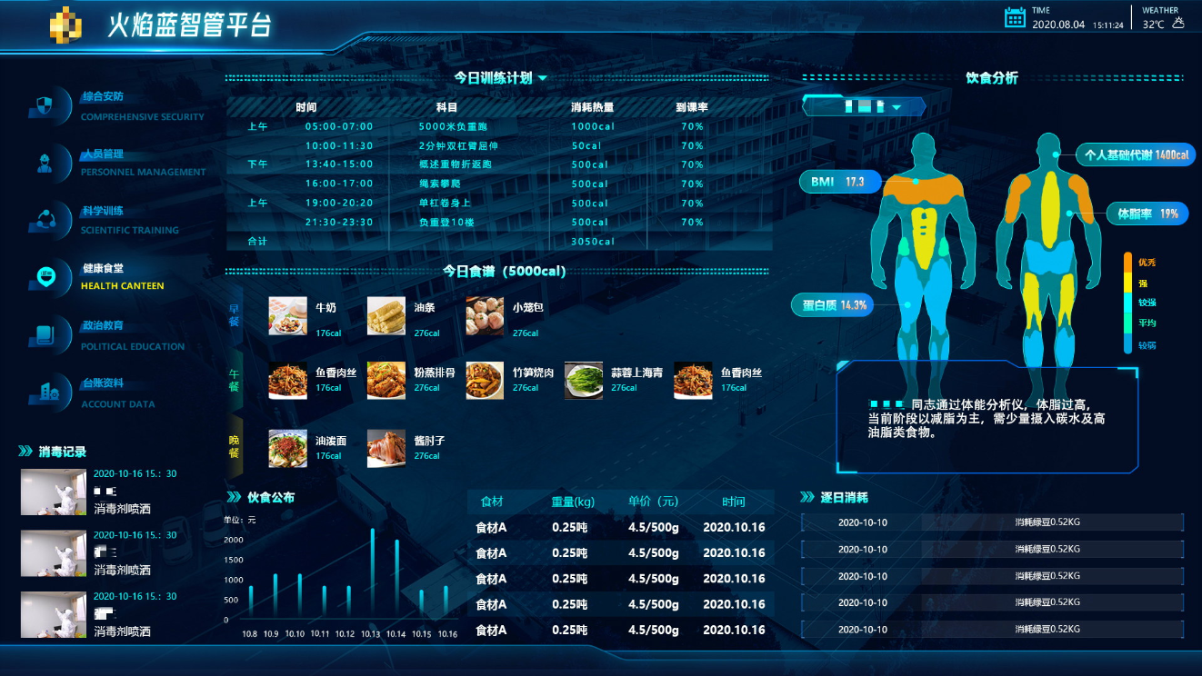 在服务消防救援队站的过程中,根据分析展示需求,结合数据调研情况,设计清晰的故事线。故事线设计紧扣消防救援业务,让展示受众能够清晰体会到消防救援站基本情况以及消防救援队员、队站、食堂、训练等管理情况,让事务活灵活现、使参观者身临其境。
