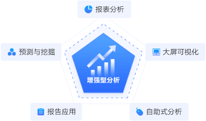 增强型分析:给予报表分析、大屏可视化、自助式分析、报告应用、预测与挖掘等多元化分析方法,全方位提升数据分析能力,精准支撑领导决策。